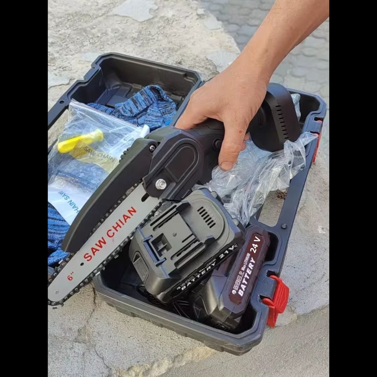 Sono abbastanza contento dell'acquisto. La motosega è una bomba. Taglia molto rapidamente e le batterie durano a lungo. Ottimo acquisto!!
